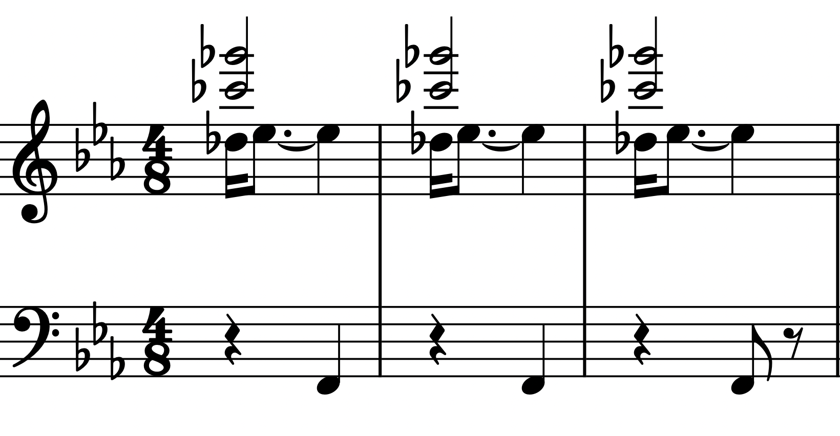 劇中歌〈I have a love〉と〈Somewhere〉のメロディが挿入される。曲の最後、全体は変ハ長調の主和音だが、低音のみトライトーンの関係にあるファ♮を鳴らし続け(譜例4)、愛する人々を失ったマリアの悲しみと、終わることのない憎しみの連鎖を象徴している。